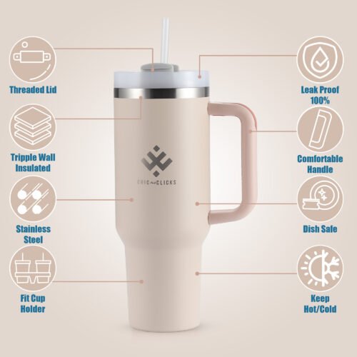 Stay refreshed all day with our 40oz Insulated Stainless Steel Tumbler, designed for both style and performance. This Simple Modern Tumbler comes with a comfortable handle and a reusable straw, making it perfect for workouts, travel, or everyday hydration.