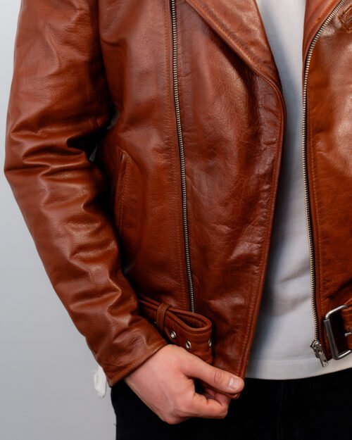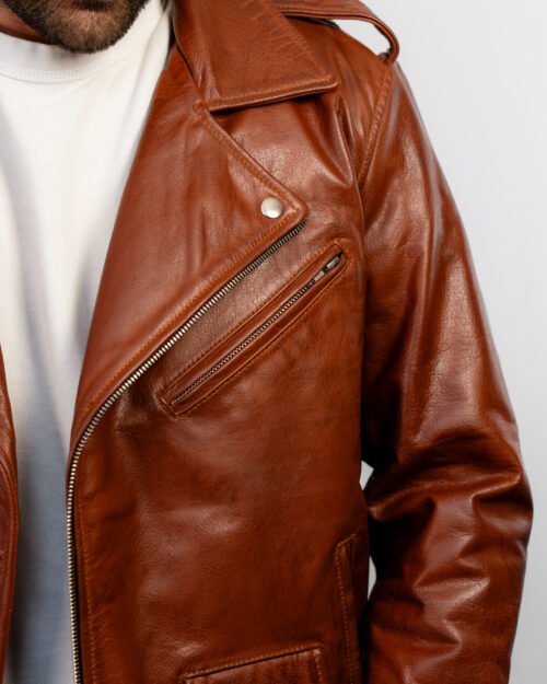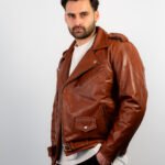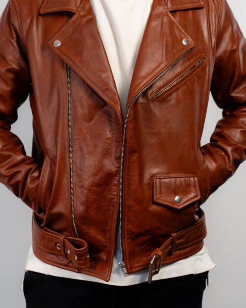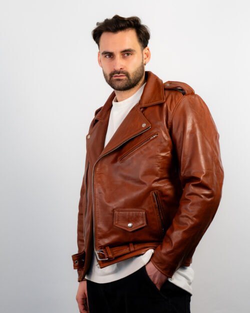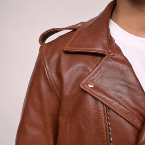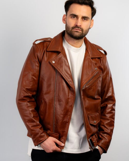 Shop the Brown Leather Double Rider Jacket—crafted from premium leather with a rugged waxed finish, durable hardware, and classic biker styling.