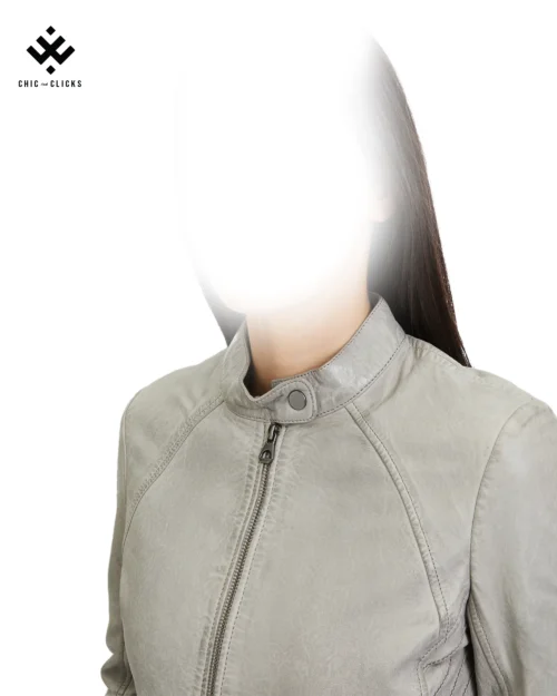Step into sleek elegance with the Chic SilverMist Short Jacket | Urban Moto Edition | Chic and Clicks—a women’s biker jacket crafted from premium vegetable-tanned lambskin leather in a striking silver grey tone. With its structured silhouette, refined side panels, and moto-inspired features, this cropped jacket merges edgy street style with modern sustainability. The detailed waistband with snap fasteners and belt buckles adds character and shape, while eco-conscious materials elevate its feel-good factor.