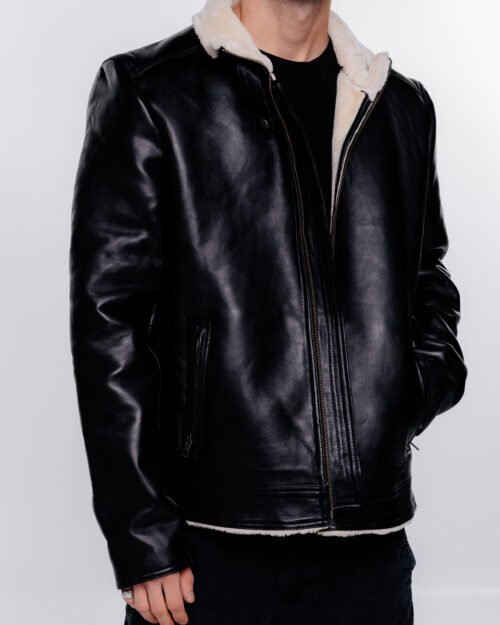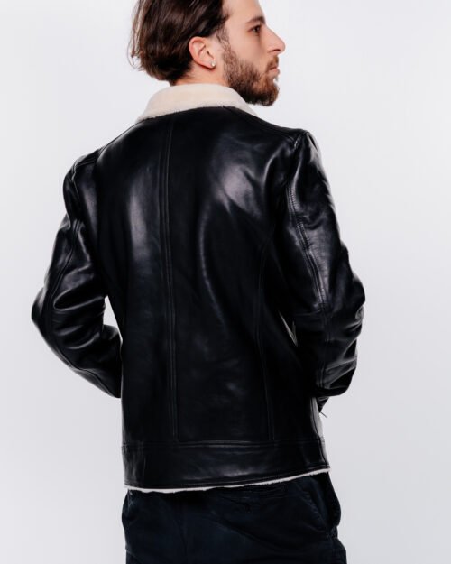 Men’s Black Leather Jacket with Shearling Collar – Premium Winter Wear