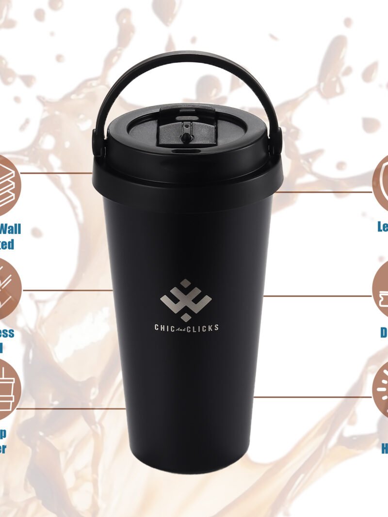 The Chic Tumbler 500ml Stainless Steel Coffee Mug is designed for modern lifestyles, featuring double-wall insulation to keep your drinks hot or cold for hours. With a food-grade lid, non-slip silicone base, and ergonomic design, it’s perfect for work, travel, or daily use. Durable, lightweight, and eco-friendly, this tumbler combines style and practicality seamlessly.