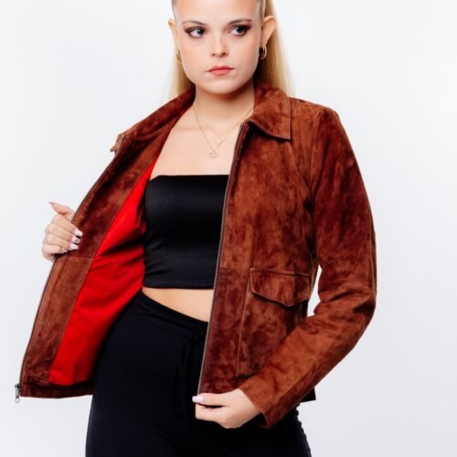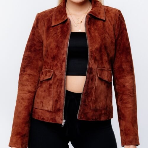 Shop the Women’s Brown Suede Jacket—crafted from premium soft suede, featuring a smooth texture, elegant fit, and timeless style perfect for everyday fashion.